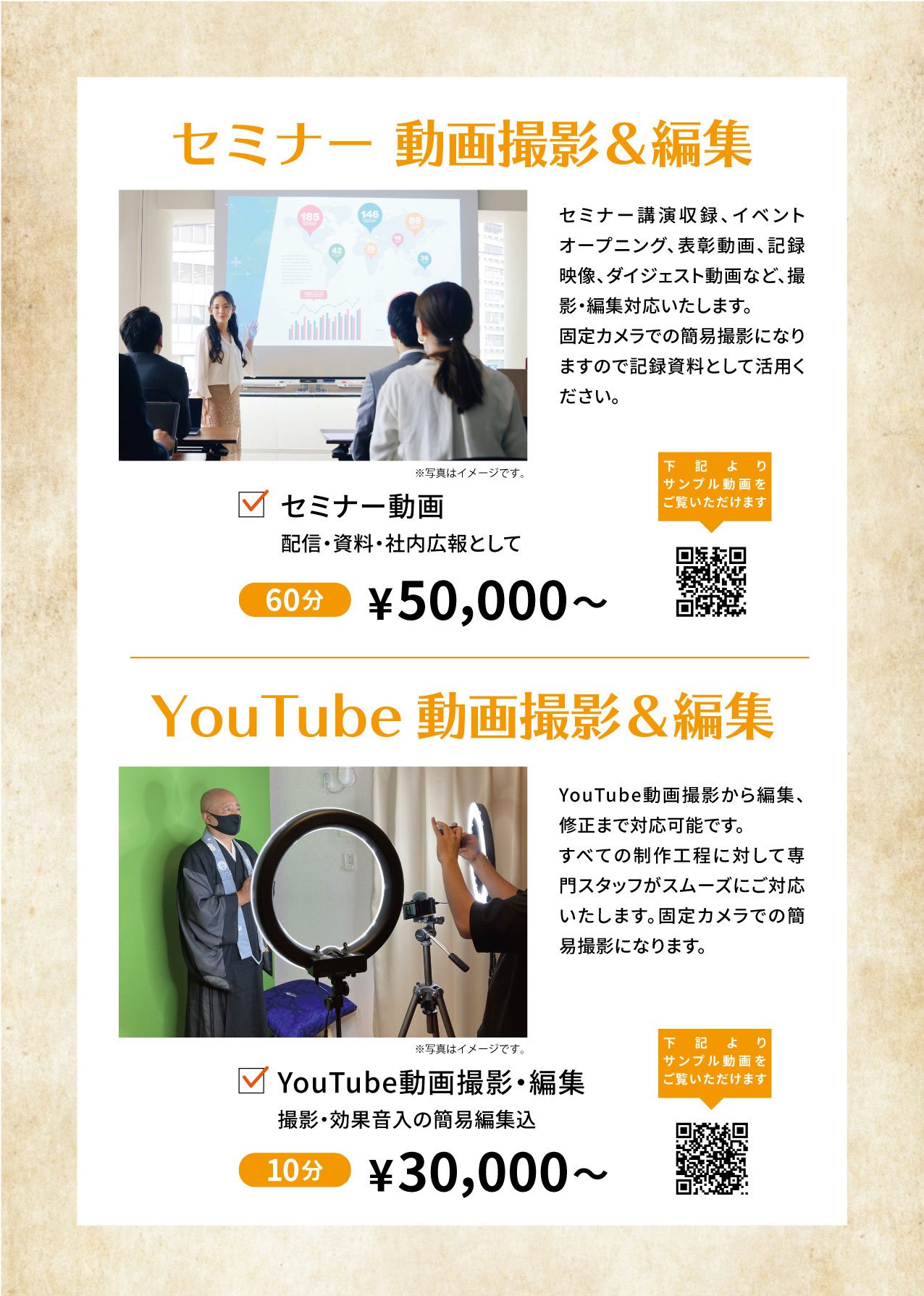 様々なシーンで動画撮影から編集までお任せ下さい。